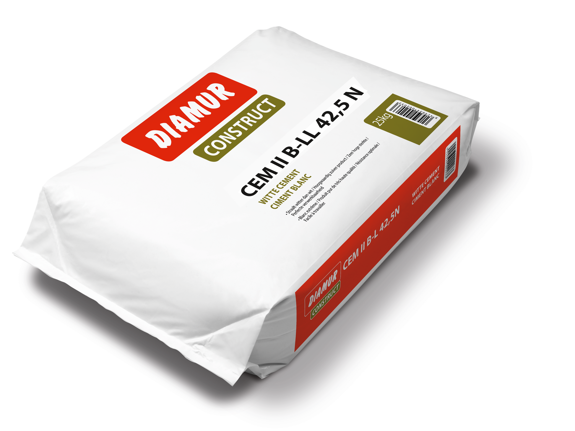 Diamur CEM II/B-LL 42,5 N WIT is beschikbaar in zakken van 25 kg.